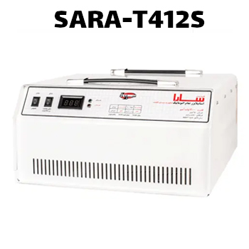 استابلایزر سارا ظرفیت 12000 ولت آمپر مدل T412S، مناسب برای: کل منزل همراه با کولر گازی، ولتاژ ورودی: 146 الی 260 ولت، ولتاژ خروجی : 220 ± 5% ولت، جریان خروجی: 50 آمپر، ابعاد : 200*245*510 میلی متر، بدنه فلزی مقاوم، دارای کلید قطع و وصل جریان و همراه با 36 ماه گارانتی